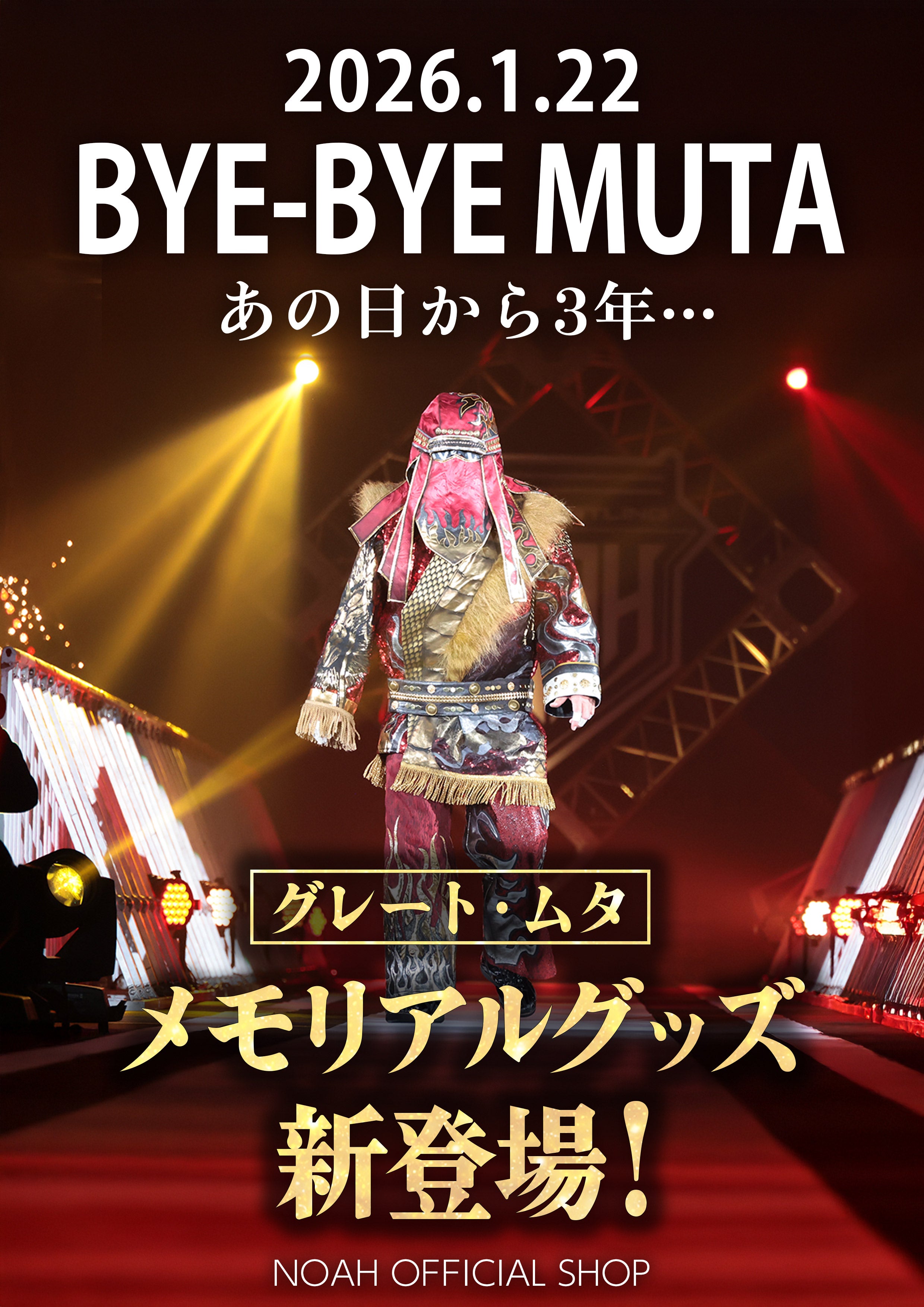 【発売開始】2026.1.22 Bye-Bye MUTA ――あの日から、3年。 グレート・ムタ メモリアルアイテムが22日(木)より販売スタート!